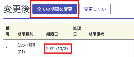 変更後の期限が次回の期限日になっていることを確認して「全ての期限を変更」をクリックする