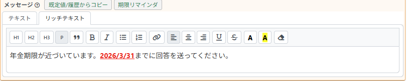 ※IFオプションの差込がある場合、リッチテキストを使用するとエラー表示となることを確認しており、修正対応可否について検討を進めております。(2026/3/24現在)